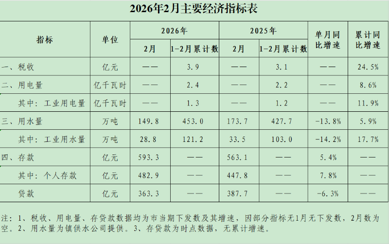 古镇镇2026年2月主要经济指标表