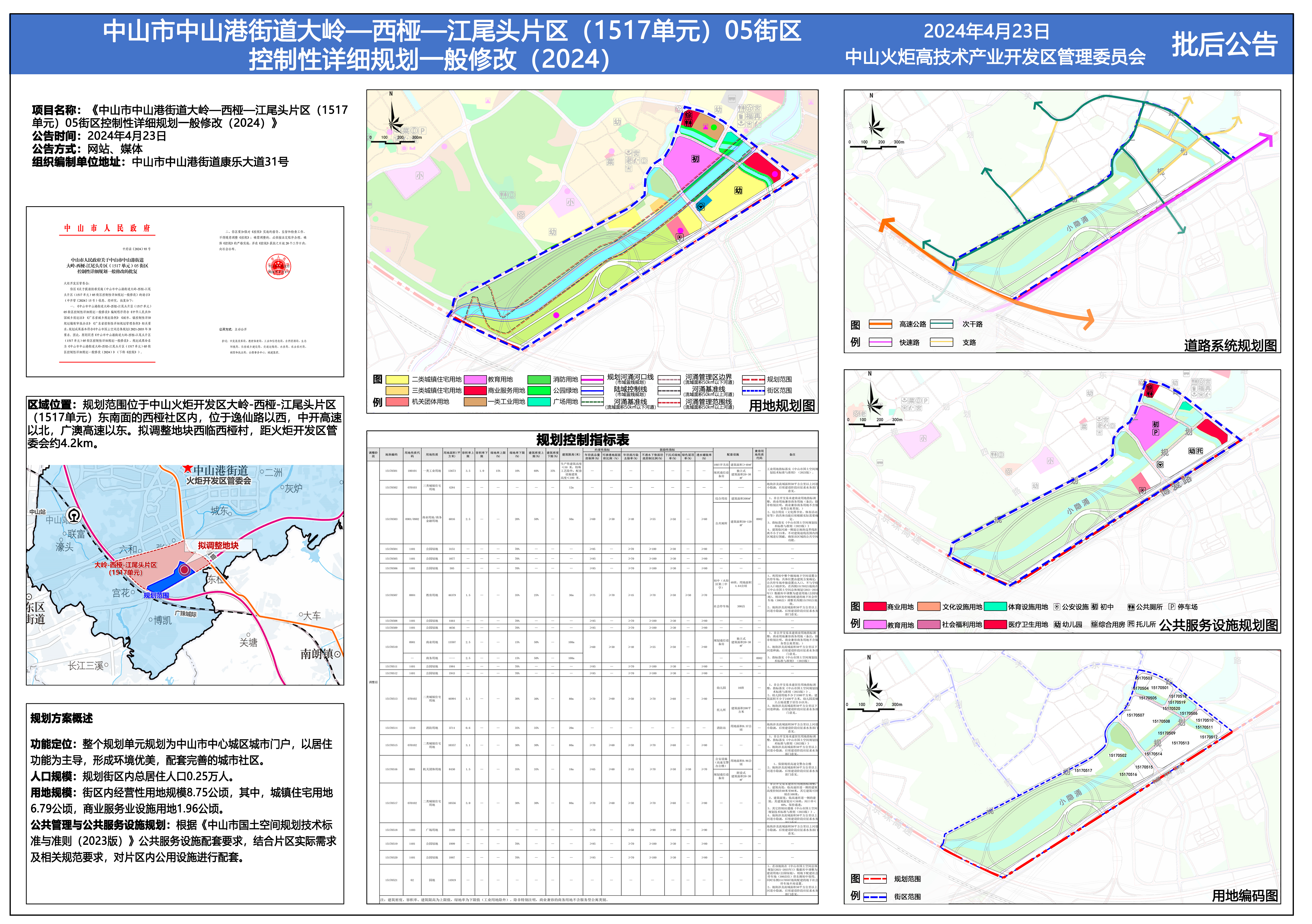 附件:《中山市中山港街道大岭—西桠—江尾头片区(1517单元)05街区控制性详细规划一般修改(2024)》成果的公告