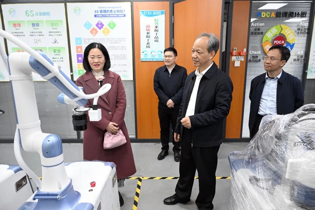 郭文海参观展厅,与企业负责人交流,了解智能机器人产品研发、应用等情况,充分肯定企业找准市场方向、坚持产品创新所取得的成效,勉励企业抢抓人工智能发展机遇,扩大生产规模,拓展应用场景,加快抢占市场,扎根中山做大做强,让更多优质产品走进千家万户。中山干部队伍将用心用情服务企业,为企业创新创造、做大做强创造良好条件。