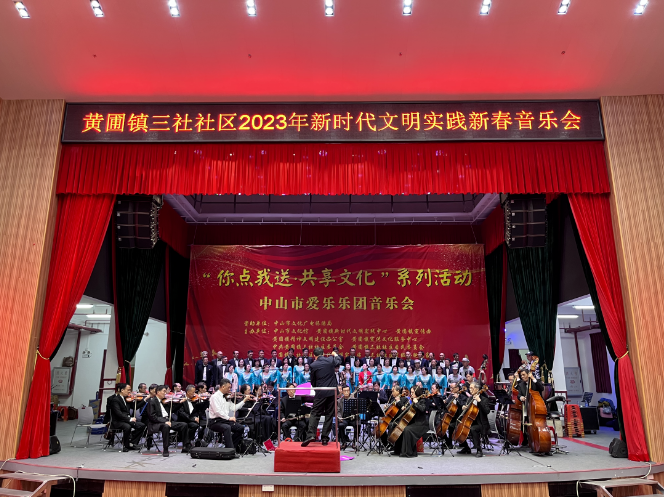 为丰富群众精神文化生活,助力我市争创全国文明典范城市,近日,黄圃镇三社社区组织党员、群众、学生家长、文化队伍以及港澳乡亲、侨眷侨属代表约400人,观看了三社社区2023年新时代文明实践新春音乐会。镇党委委员李华军和相关部门负责人出席活动。