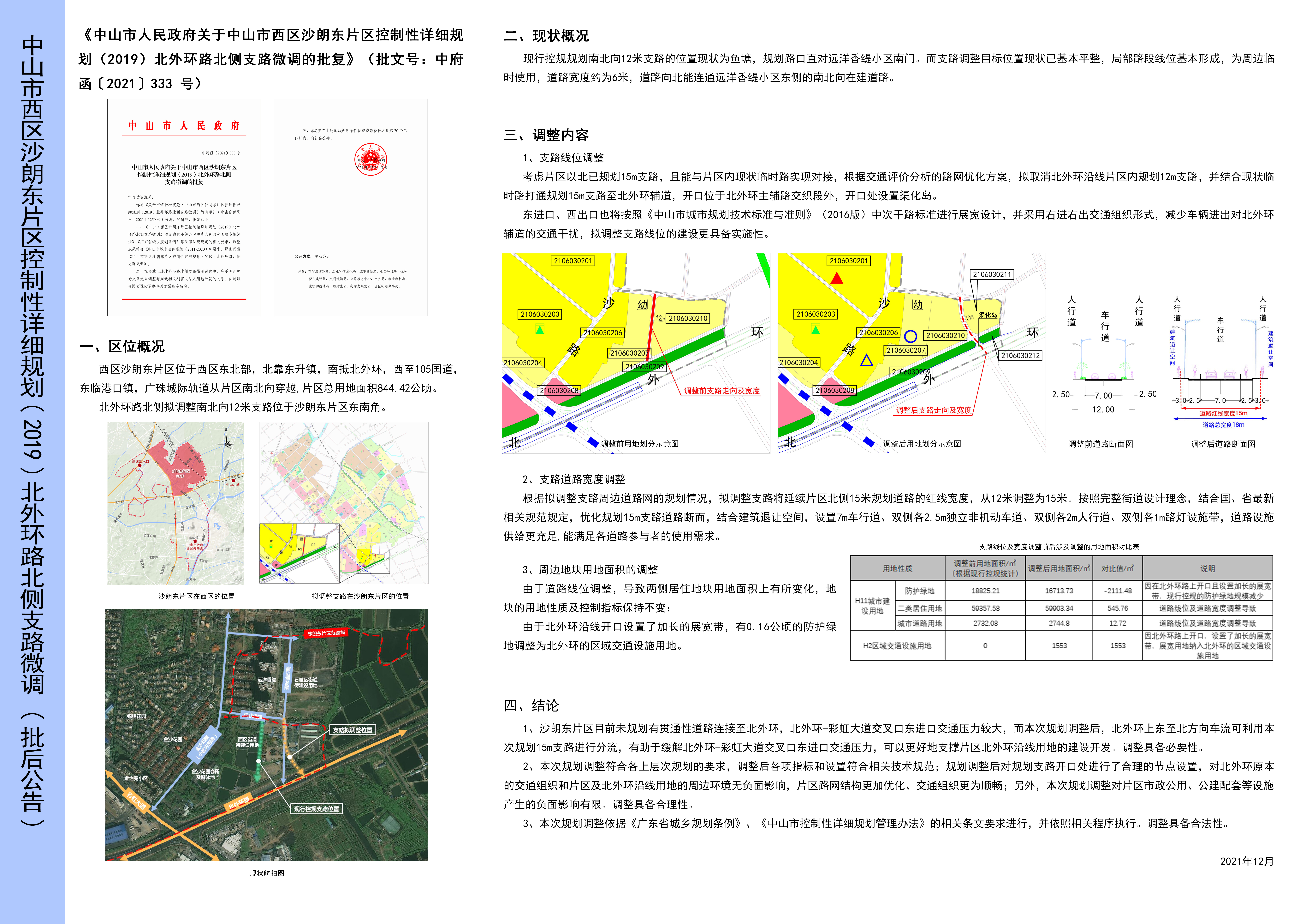 | 名称: | 关于公布实施《中山市西区沙朗东片区控制性详细规划(2019)北外环路北侧支路微调》成果的公告 | ||