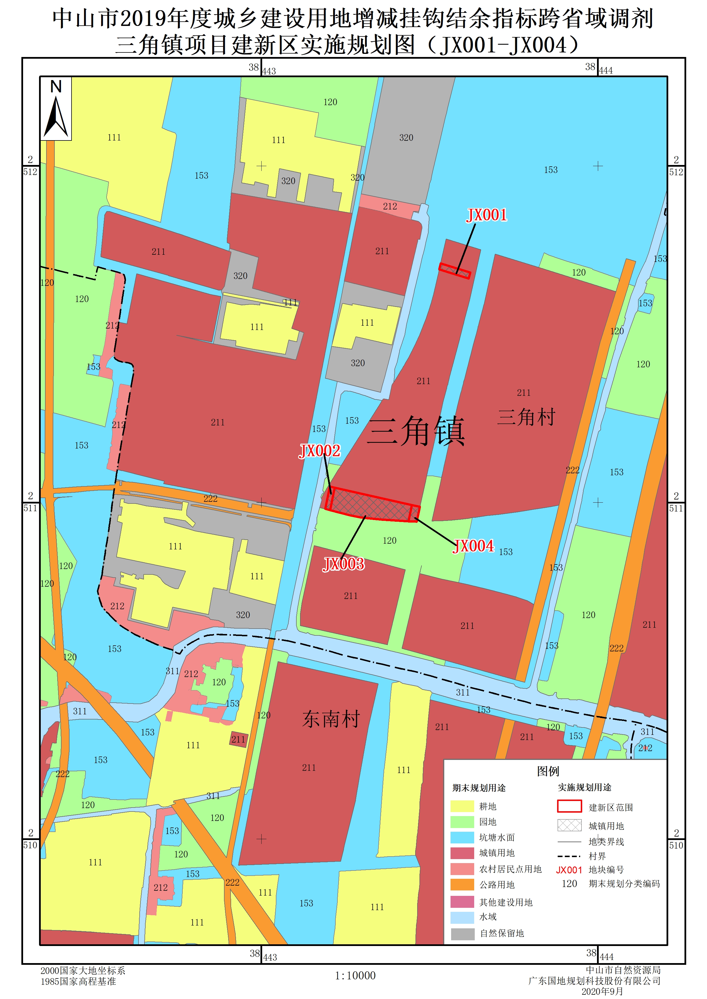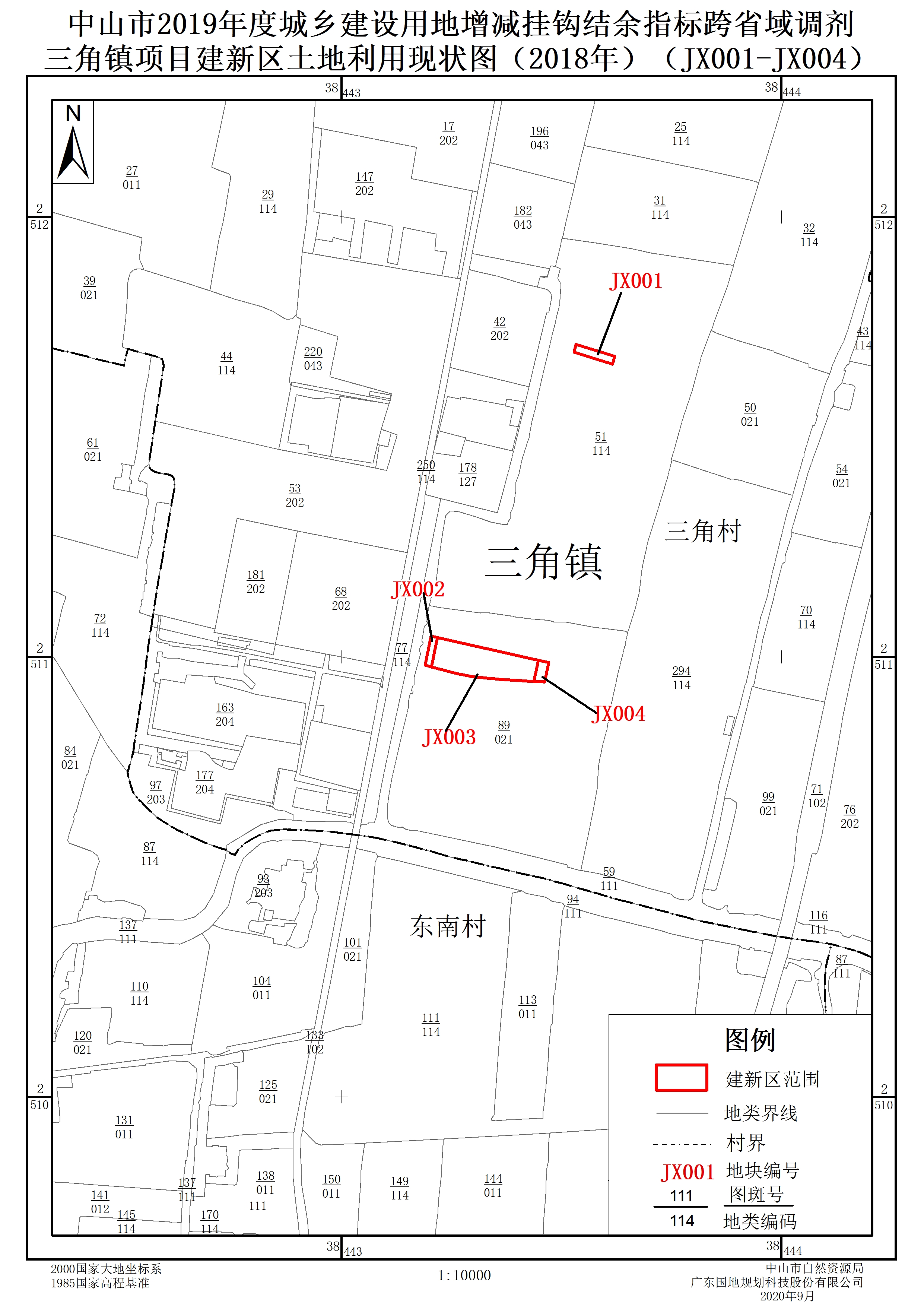 建新区位于中山市三角镇三角村,面积为28.17亩,共计4个地块。根根据中山市2018年度土地利用现状数据,建新区的土地利用现状全部为农用地,其中园地24.15亩、其他农用地4.02亩。建新区地块土地利用规划用途全部为城乡建设用地。
