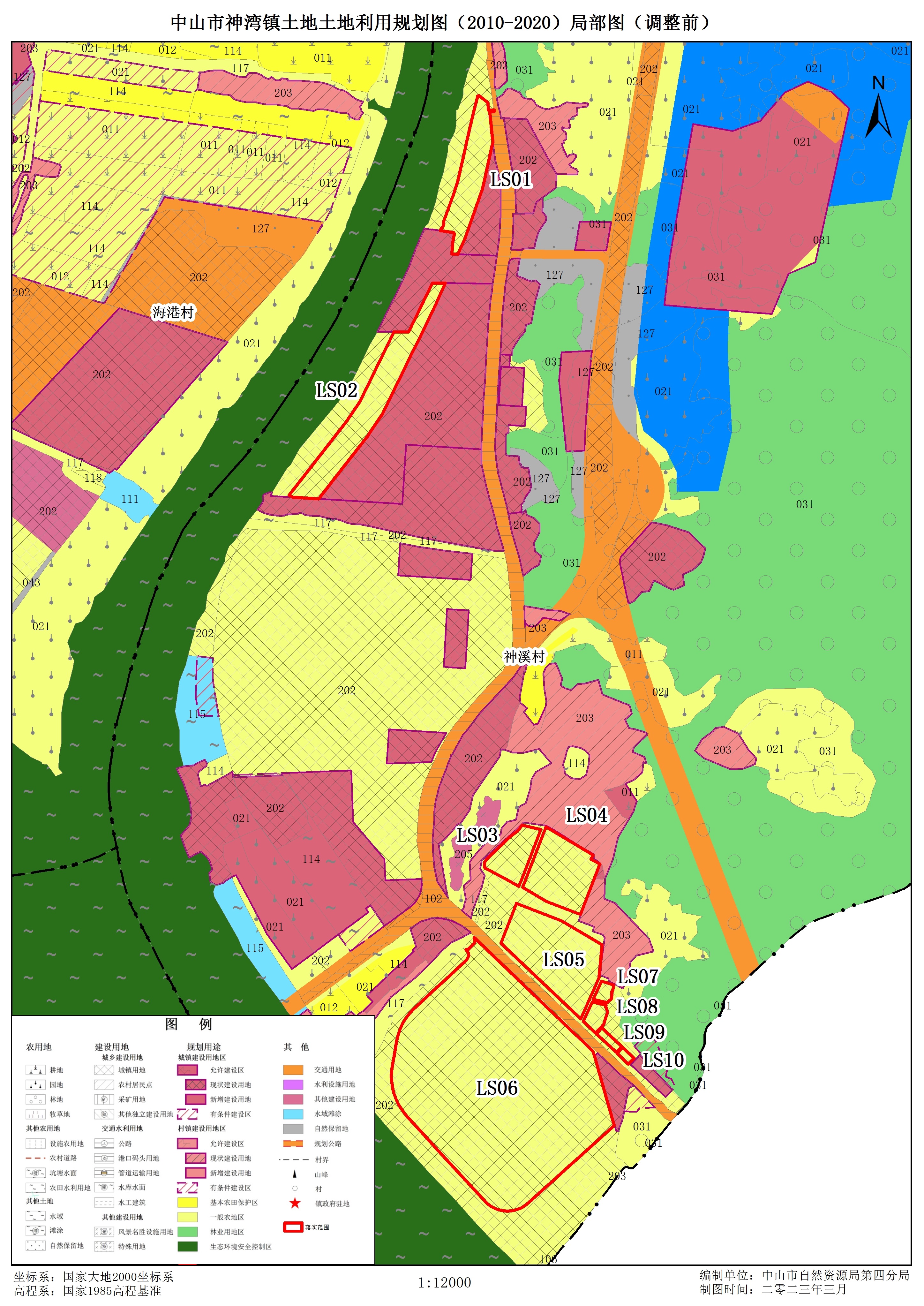 附件:1.中山市神湾镇土地利用总体规划(2010-2020年)局部图(调整前)