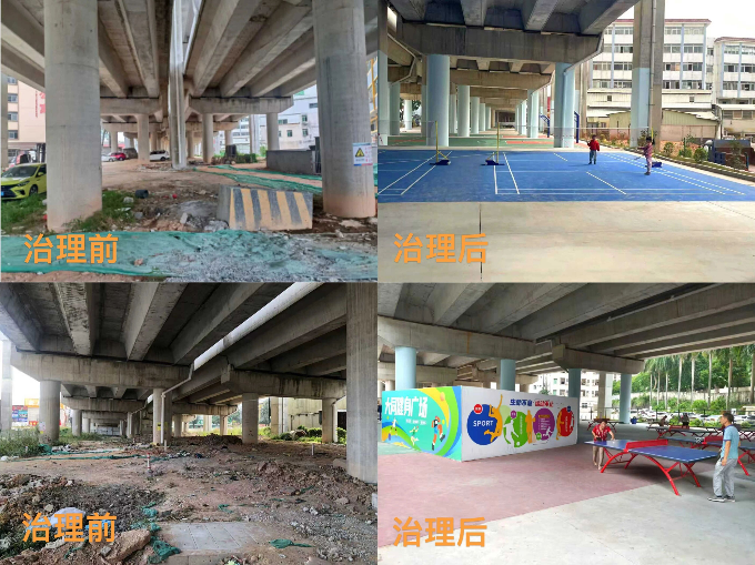 ▲沙溪镇大力推进桥下空间改造,按照“一桥一策”思路,重点改造板尾园广珠西线桥下空间、充美加油站侧中开高速桥下空间、大同市场对面中开高速桥下空间三大区域,改造面积达12000平方米,有效激活城市灰色空间。其中,大同中开高速桥下空间面积共约7000平方米,投入100多万元建成健身广场,内有乒乓球场、羽毛球场、篮球场等体育设施,成为周边居民体育健身好去处。
