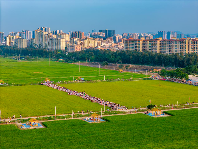 ▲沙溪镇以农地连片改造“破题”田间窝棚治理,完成龙头环村1055亩、濠涌荔枝围216亩、沙溪服务区422亩农田连片整治。其中,龙头环村采用“整体流转+镇企托管+央企投资”的方式整合开发1055亩连片农地,拆除田间窝棚近180个,注入文旅、文化IP资源,规划建设驿站、绿道、湿地公园等设施,打造集农业生产、科普研学、休闲旅游于一体的千亩稻田观光项目。