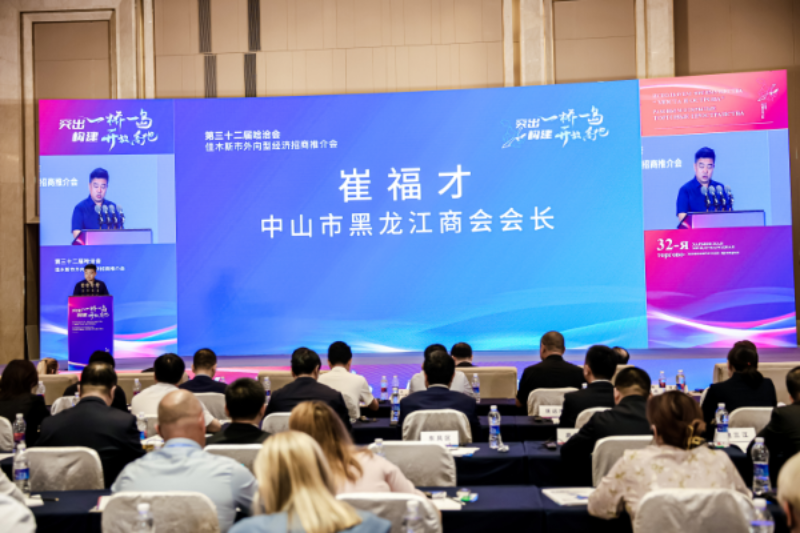 图2.中山市黑龙江商会在佳木斯市外向型经济招商推介会上发言