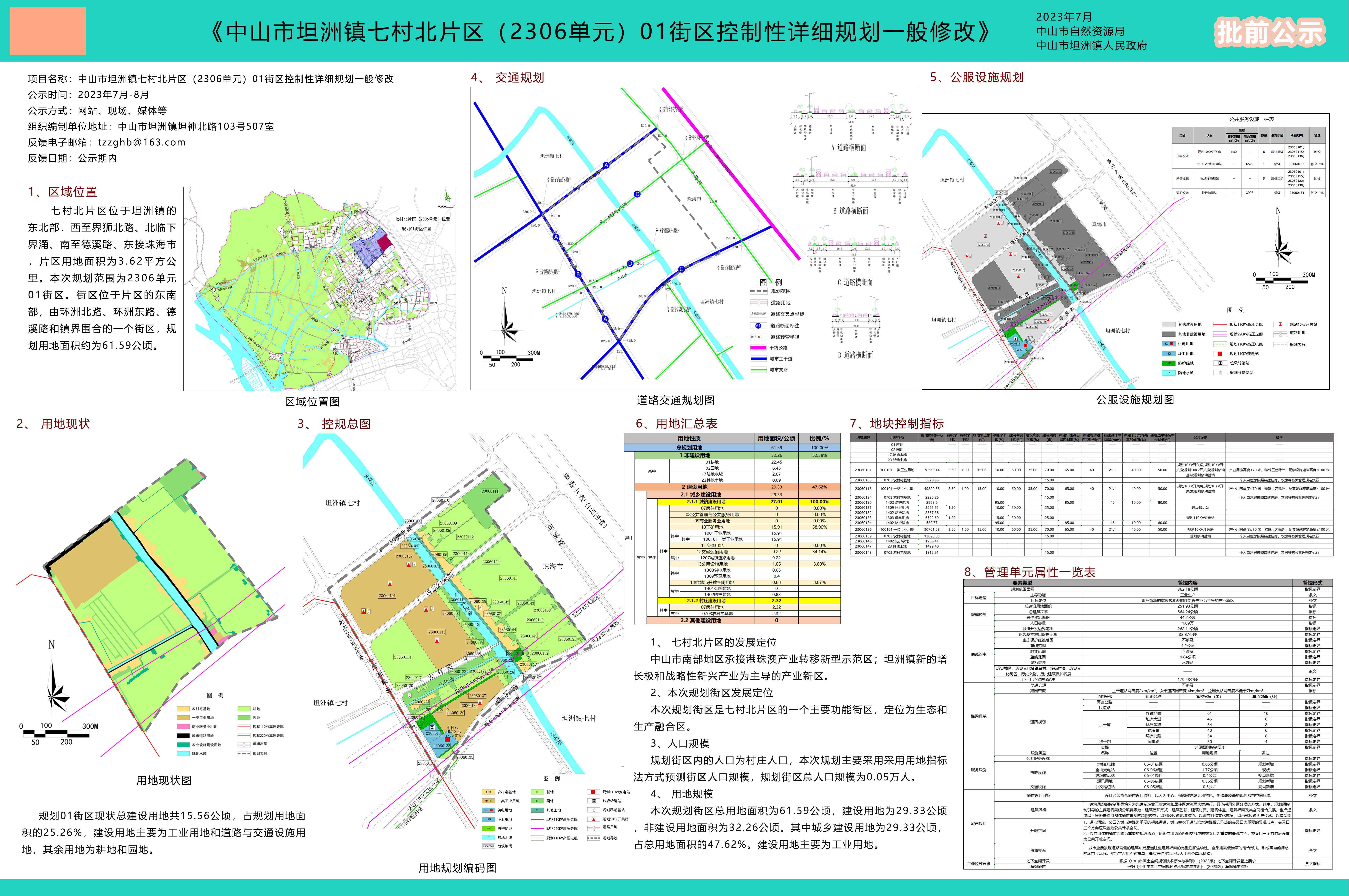 附件:《中山市坦洲镇七村北片区(2306单元)01街区控制性详细规划一般修改》批前公示