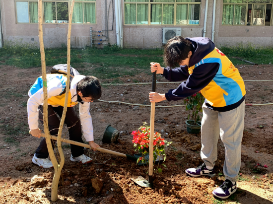 植树现场,大家热情高涨,或三人一组,或四人一队,挥锹挖坑、扶树正苗、浇水定根,每个环节都衔接有序,配合默契,现场一派繁忙有序、干劲十足的景象,不一会儿,新栽植的一棵棵苗木昂然挺立,焕发出生机与活力。