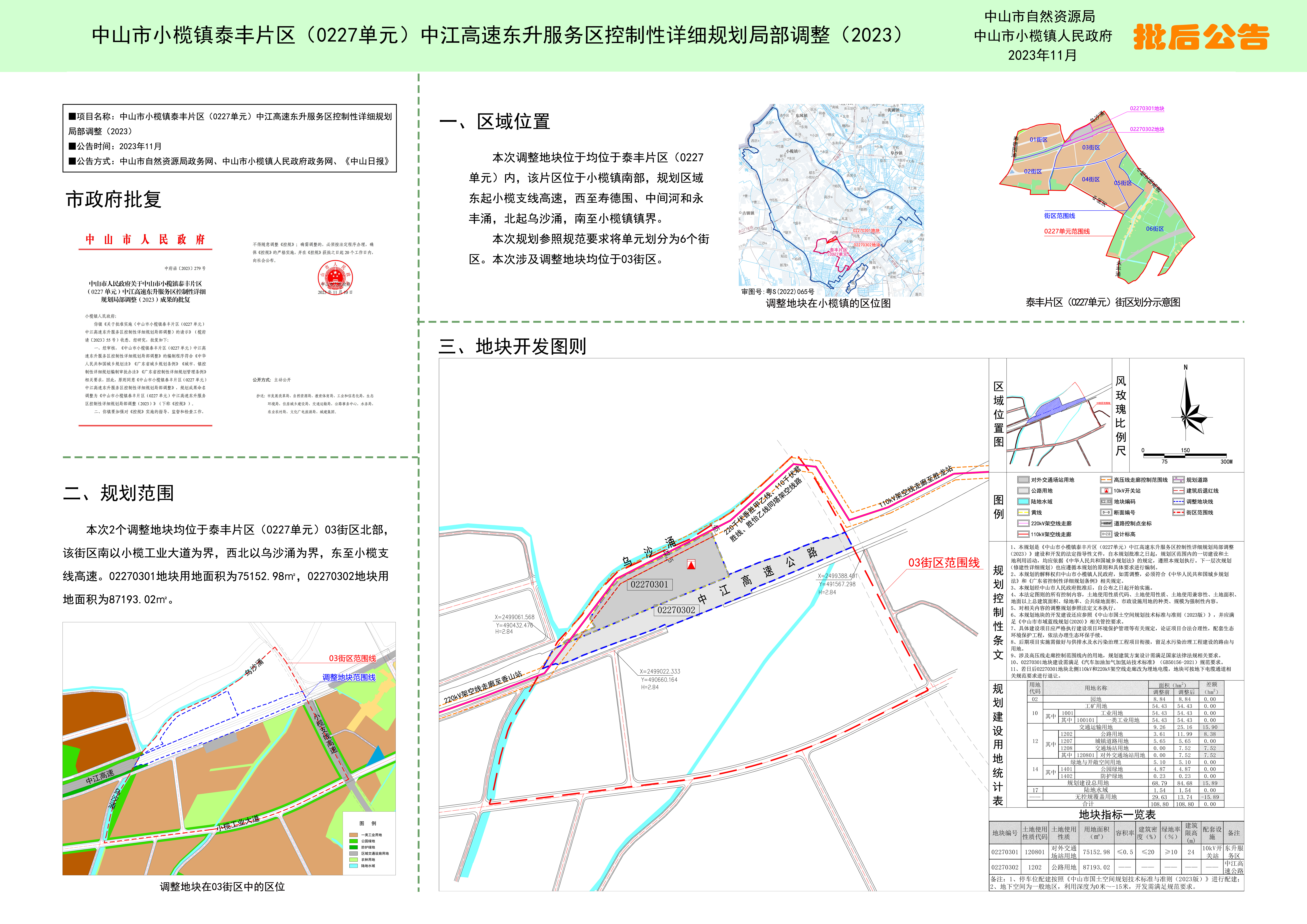 附件:《中山市小榄镇泰丰片区(0227单元)中江高速东升服务区控制性详细规划局部调整(2023)》批后公告