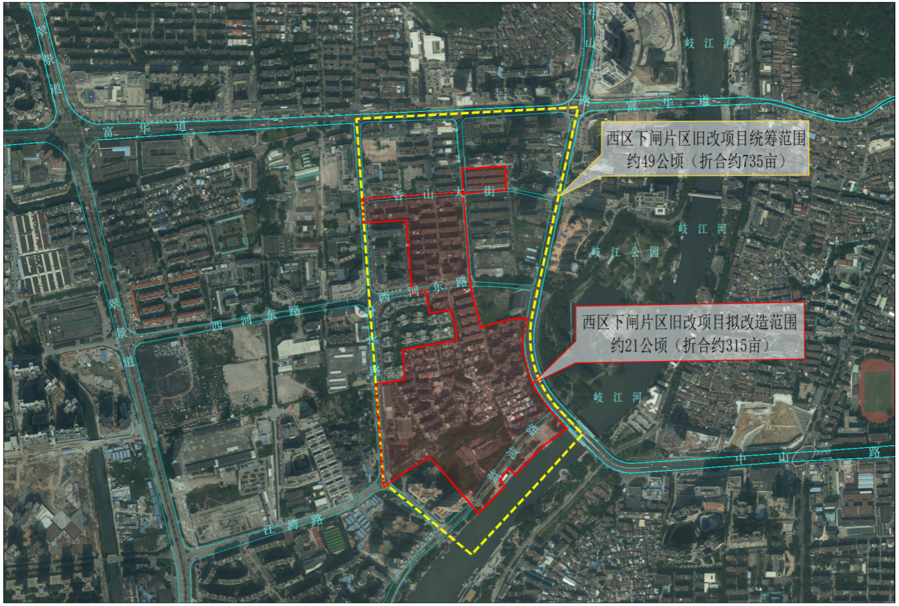 二、现状固化范围位于西区街道下闸片区旧改项目拟改造范围内,详见附图。
