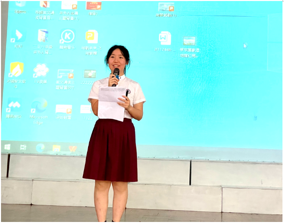 在申明亭学校,来自烟洲中学的李云翮跟同学们分享了参赛经验,以自己的参赛视频为例,重点讲解如何选题、收集整理资料,结合参与的课题实践增加感染力,现场的发挥、表达技巧等。