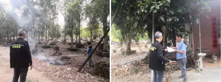 近日,中山市网格化AI摄像头发现云汉花木场内有无组织露天焚烧行为。接报后,镇生态环境局迅速组织人员到现场核实处置。