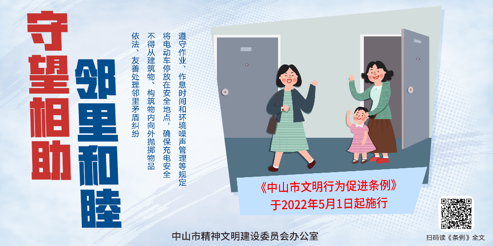 《中山市文明行为促进条例》于2022年5月1日起施行