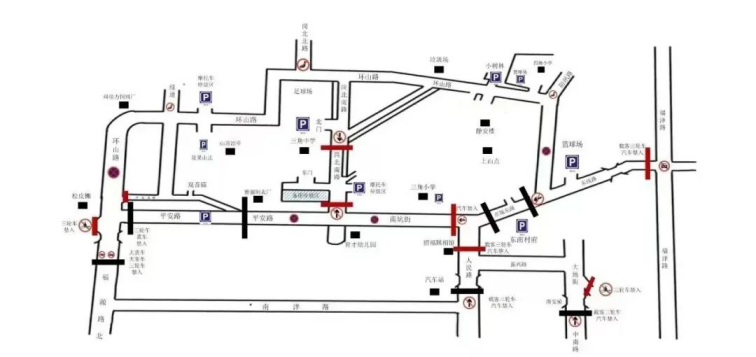 环山路、平安路、岗北南路、南坑街、人民路、振兴路、大地路、中南路、市场东路、东线路、防汛路(原东南小学侧路段)实行临时交通管制,禁止黄牌货车、客车驶入。