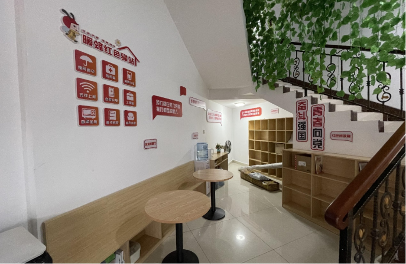 合胜百货的公益慈善没有轰轰烈烈,而是“润物无声”,体现在一个个“细小”的事情当中。2023年,在镇政府相关部门的指导下,合胜百货党支部在公司一楼设立“暖蜂驿站”,打造面向新业态新就业群体提供一站式、全方位、多层次的服务站点,站内设置便民应急区、红色阅读角、休闲歇脚厅,提供休闲桌椅、热水、公共wifi、充电宝、充电线、书籍、雨具、急救药箱等,为外卖员、快递员和环卫工人等搭建一个奔波路上的“红色驿站”。合胜百货还响应号召设立第一批“绿美妈妈岗”,为待业妇女提供灵活就业岗位,不仅增加收入,也让生活变得更加充实。