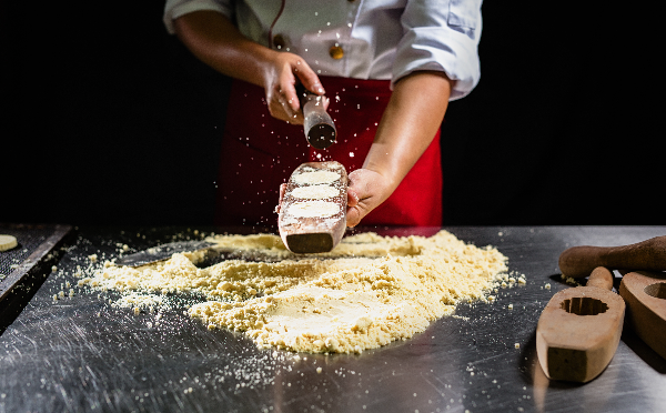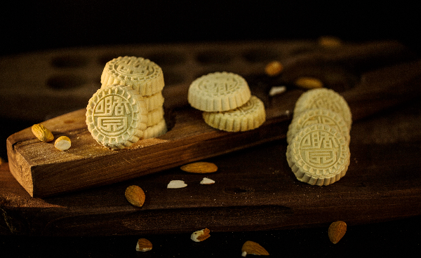 杏仁饼诞生于清光绪末年的香山县城石岐。由兴宁里一清官后裔诗礼传家——萧家的女佣潘雁湘在萧友柏妾侍林大姑指导下而创制。杏仁饼选用绿豆粉用木制饼模打制出形如杏仁的饼样,并加入特制猪肉做夹心,经过一系列传统烘培工艺制成,入口甘甜松化,令人齿颊留香,1918年正式以“咀香园杏仁饼家”挂牌经营,产销两旺。