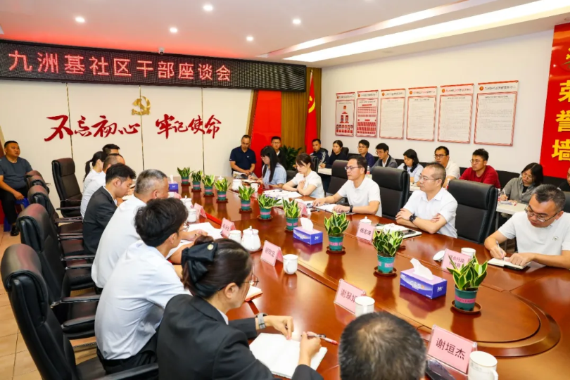 随后召开的社区干部座谈会上,社区负责人汇报了九洲基社区近期经济社会发展情况、现存困难及下一步计划,社区“两委”班子成员就盘活低效用地、壮大集体经济、改善人居环境等方面建言献策。驻点镇领导及相关部门负责人逐一回应社区诉求,给出针对性指导意见。