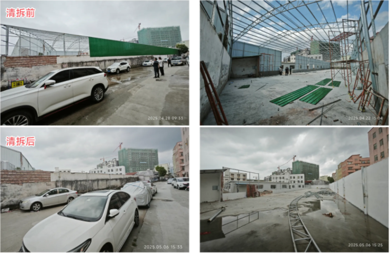 近日,板芙镇执法人员巡查中发现,板芙镇里溪大道某厂区内存在违法建设行为。经查,涉事当事人在未依法取得建设工程规划许可证的情况下,擅自搭建钢结构建(构)筑物,违建面积约1000平方米,违反《中华人民共和国城乡规划法》第四十条规定。发现问题后,镇综合行政执法局联合镇城建局及里溪村委会组成联合执法组,通过开展现场勘验、调查取证、约谈责任人等,依法向当事人送达《责令改正通知书》。执法人员坚持普法教育与执法监督并重,通过政策宣讲等方式,促使当事人深刻认识违法行为的严重性。经责令后,当事人在限期内自行完成违法建(构)筑物的拆除工作,累计拆除违法建筑面积约1000平方米。