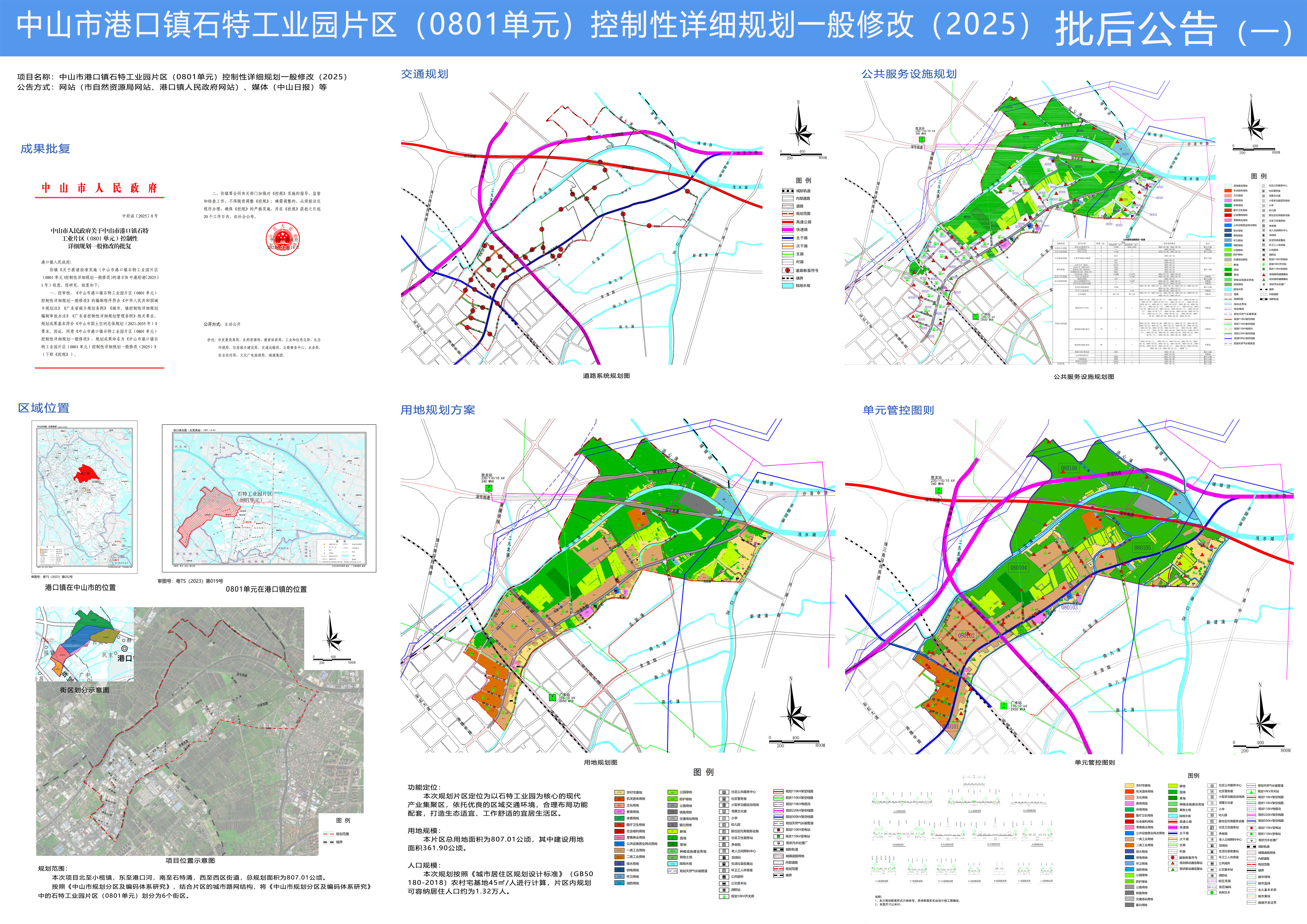 1、《中山市港口镇石特工业园片区(0801单元)控制性详细规划一般修改(2025)》批后公告(一)