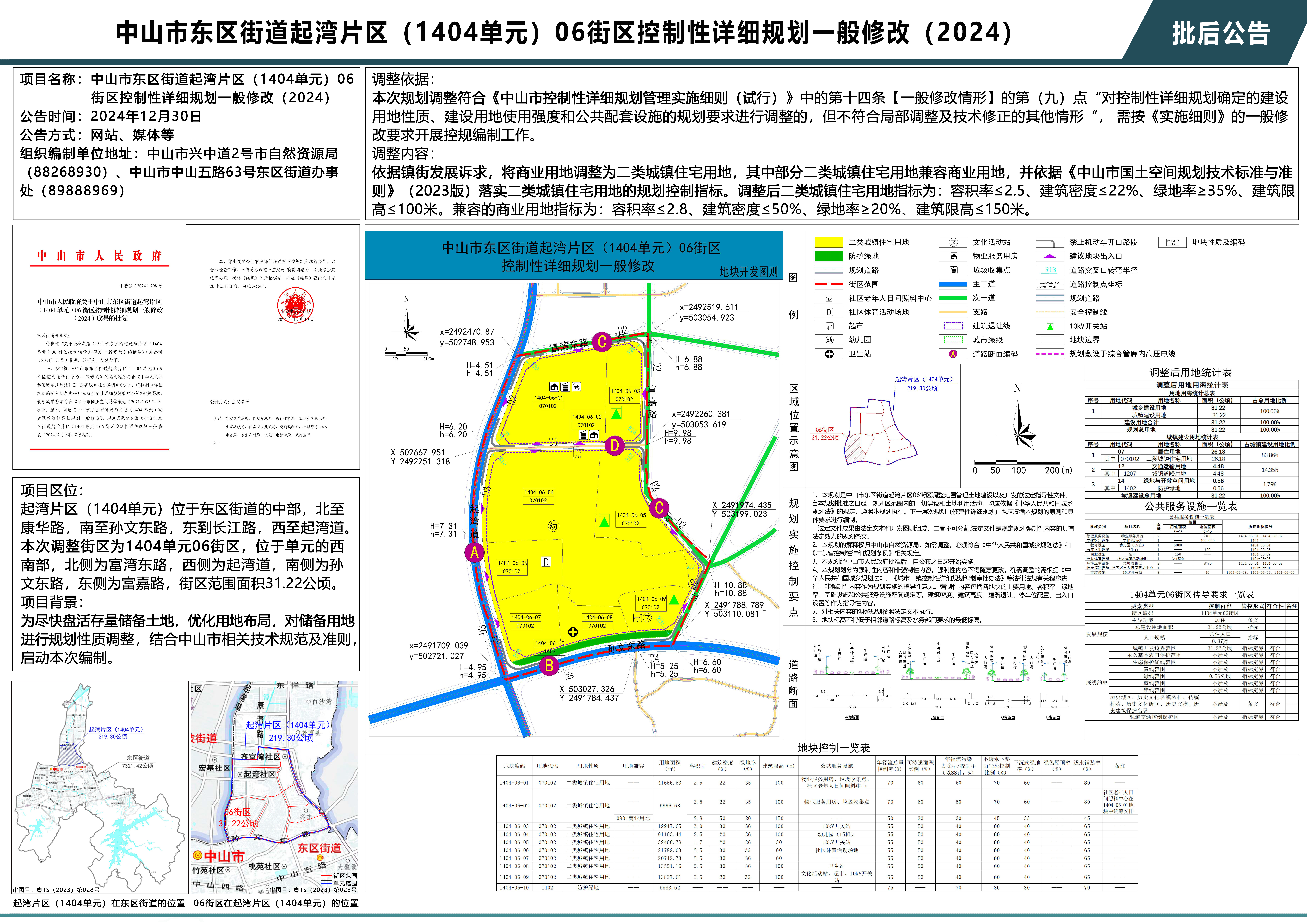 《中山市东区街道起湾片区(1404单元)06街区控制性详细规划一般修改(2024)》批后公告