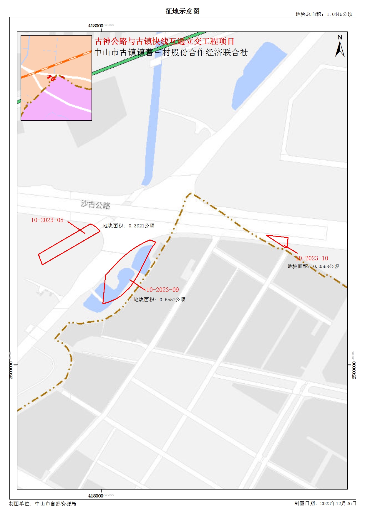 根据《中华人民共和国土地管理法》及《中华人民共和国土地管理法实施条例》的规定,2024年12月11日,经广东省人民政府同意,以粤府土审(授)〔2024〕310号批准我市征收中山市古镇镇曹三村股份合作经济联合社农民集体用地1.0446公顷为国有土地。现将有关事项公告如下: