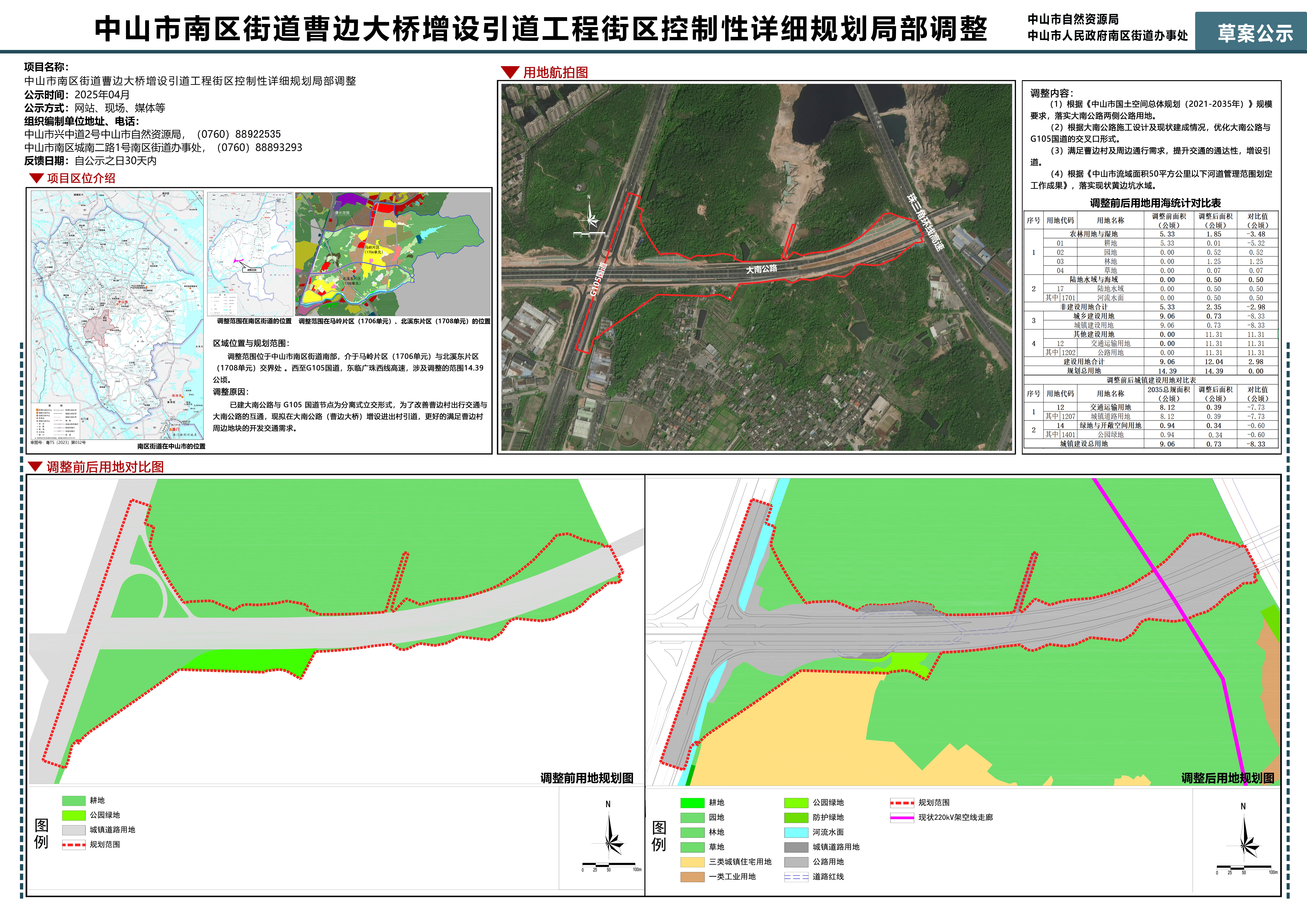 《中山市南区街道曹边大桥增设引道工程控制性详细规划局部调整》草案已完成。根据《中华人民共和国城乡规划法》等法律法规要求,现对该草案予以公示。