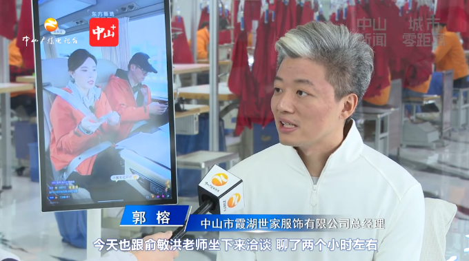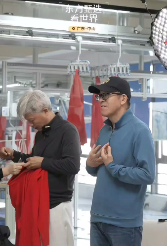 直播当日,俞敏洪团队首站便走进沙溪镇龙头企业——中山市霞湖世家服饰有限公司,深入智能制造工业园的生产一线。镜头下,全链条数字化生产场景清晰呈现,从面料研发到成衣制造的智能化流程一目了然,让网友直观感受沙溪服装产业“智改数转”的硬核实力。俞敏洪更化身“时装模特”,身着沙溪本土设计的服装亮相镜头,生动展现沙溪服装的优良品质与时尚设计,直播间互动热度持续攀升。