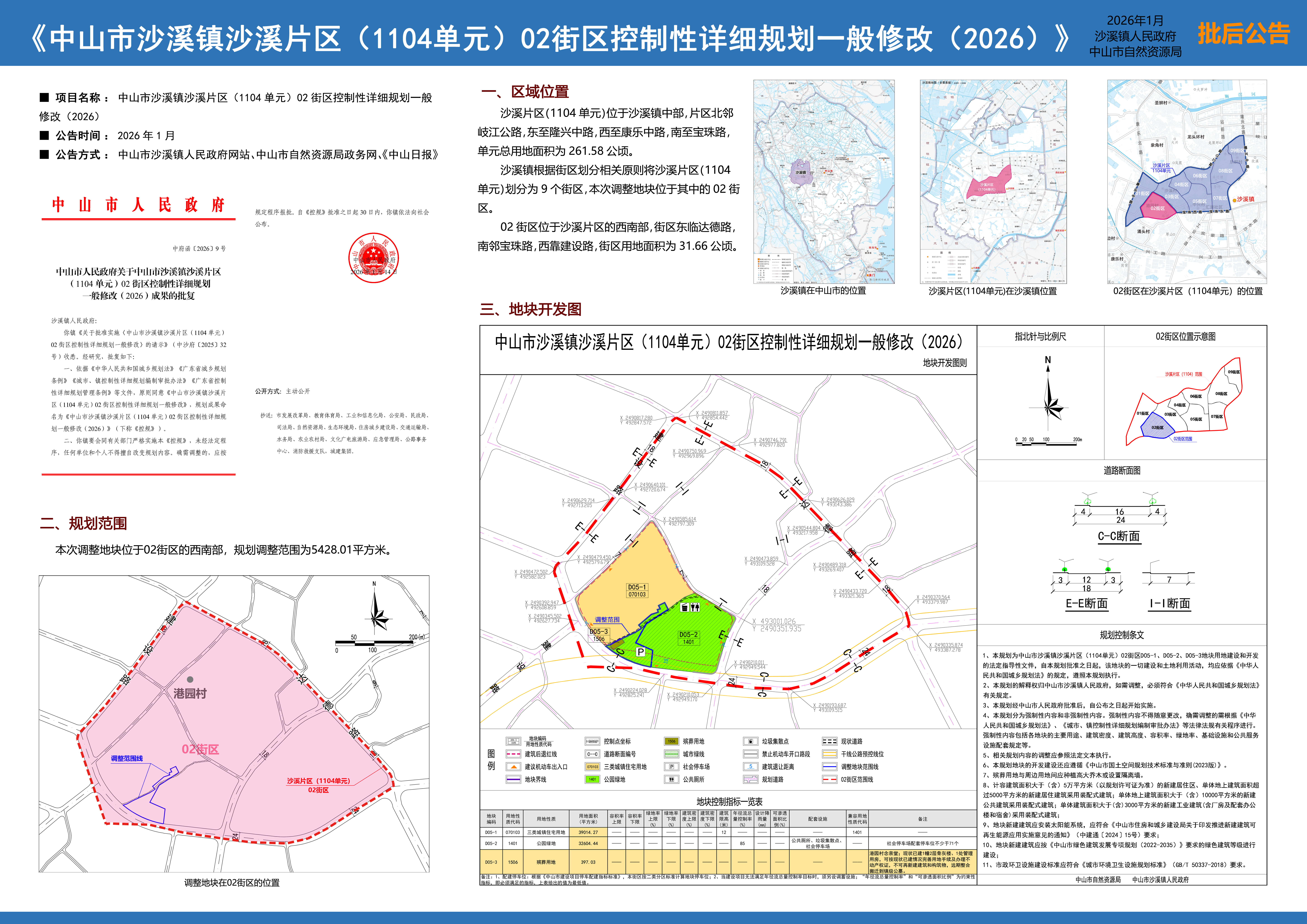 附件4:《中山市沙溪镇沙溪片区(1104单元)02街区控制性详细规划一般修改(2026)》批后公告