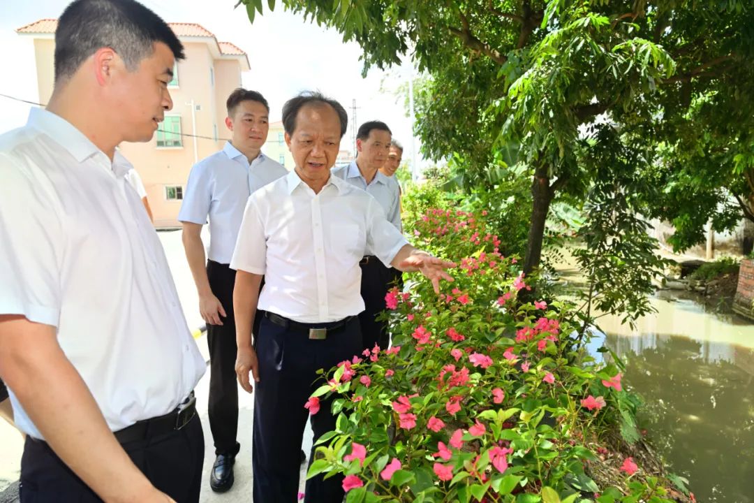 走进省“百千万工程”典型选树培育村结民村,只见一条小河穿村而过,河水潺潺流淌,两岸龙眼树绿树成荫,四周环境干净整洁,一片祥和景象。郭文海沿着河涌一路深入,沿途查看水污染治理、人居环境整治、农房风貌管控、城乡绿化美化等成效,并与村民互动交流,详细了解庭院经济发展情况,对当地扎实推进“百千万工程”予以肯定,勉励镇村持续推进人居环境整治,打造美丽庭院、美丽家风、美丽经济。