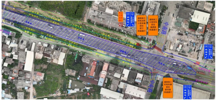 施工方案:在蟠龙路口,将主道进行围蔽施工,取消交通信号灯。施工期间,南往北方向机动车:右转直行,新华路口掉头通行。北往南方向:小型车辆及非机动车,走辅道直行至桥下,掉头通行;大货车上桥前往福源路口绕道通行。所有车辆需按照现场交通指示标志和工作人员指挥通行。