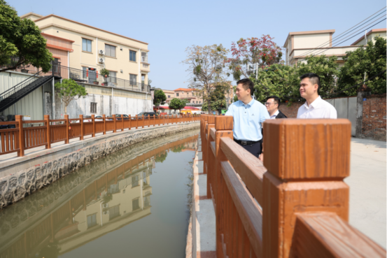 随后,一行人沿着忠安涌边走边看,实地研究河道两岸的绿化美化提升工作。李凯航指出,河道环境是城市形象的窗口,也是群众幸福生活的重要组成部分。要因地制宜、科学规划,选择适宜的绿植进行栽种,打造开窗见绿、水清岸绿的河道生态画卷,让美丽三角的成色更足、底色更亮,不断提升群众的获得感与幸福感。