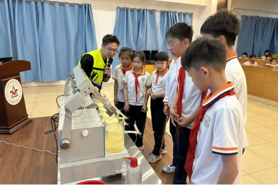本次活动是深化党建引领、推动业务融合的一次生动实践。水务事务中心党支部与新涌口粤海水务有限公司党支部充分发挥各自优势,以结对共建为桥梁,将节水宣传与校园教育紧密结合。活动伊始,现场播放三角治水工作宣传片,同学们聚精会神地观看,直观感受水资源的珍贵与治水工作的不易。在党员代表的引导下,同学们不仅从自身做起,更纷纷表示要将节水知识带回家,“小手拉大手”带动父母一起从身边小事做起,共同参与到爱水、护水、节水的行动中来。
