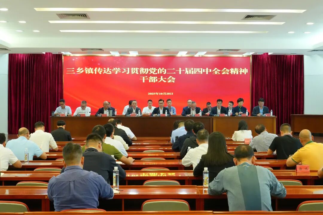 10月28日,三乡镇召开传达学习贯彻党的二十届四中全会精神干部大会,深入学习习近平总书记在党的二十届四中全会上的重要讲话和全会精神,以及省、市传达学习贯彻党的二十届四中全会精神相关会议精神,研究部署下一阶段工作,打好“十四五”收官战,为“十五五”时期良好开局做实战略整备。镇党委书记冼智前主持会议并讲话,镇党委副书记、镇长李振等镇全体领导班子成员,各机关、事业单位负责人,各村(社区)党组织书记等参加会议。