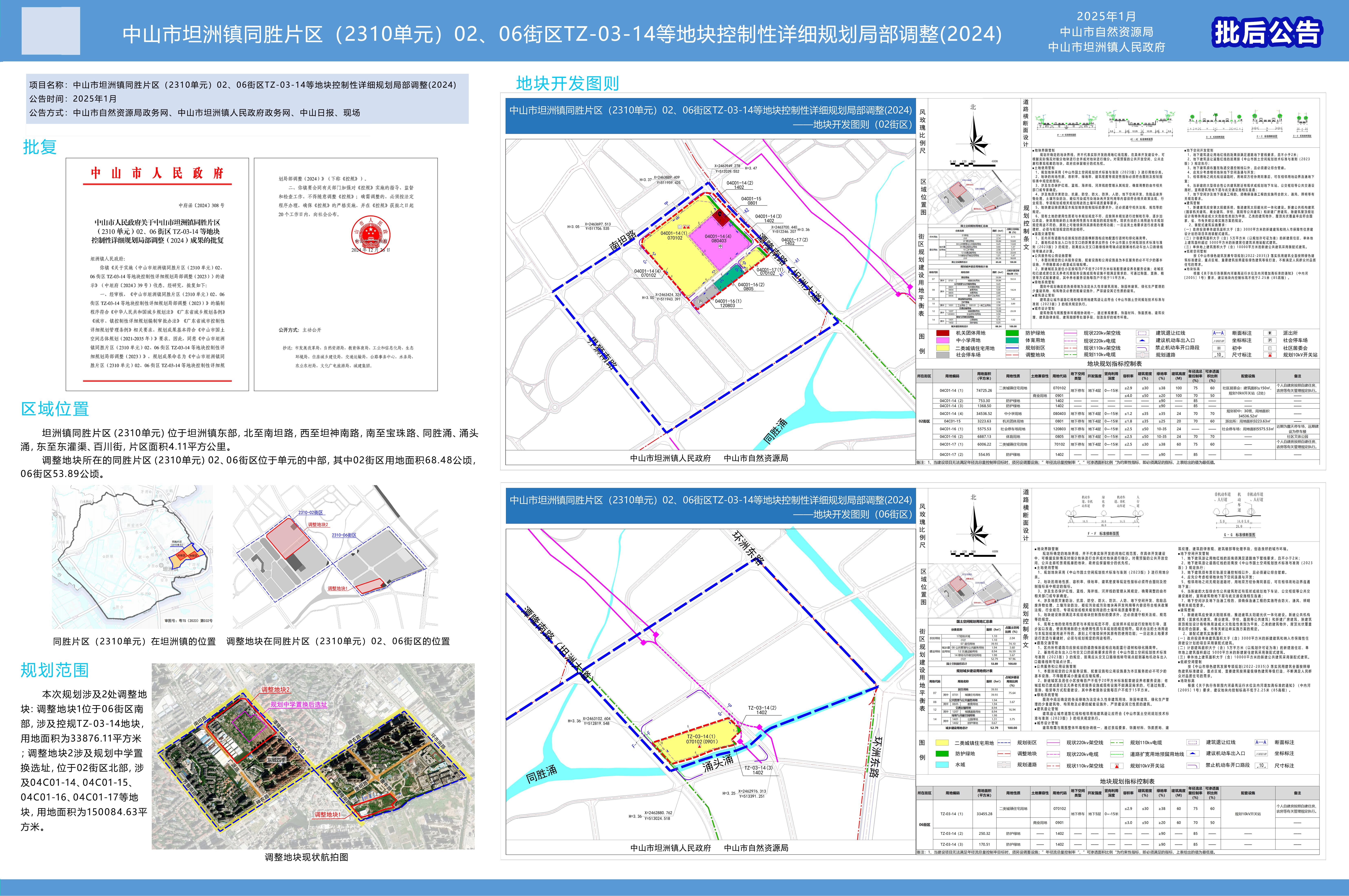 附件:《中山市坦洲镇同胜片区(2310单元)02、06街区TZ-03-14等地块控制性详细规划局部调整(2024)》批后公告