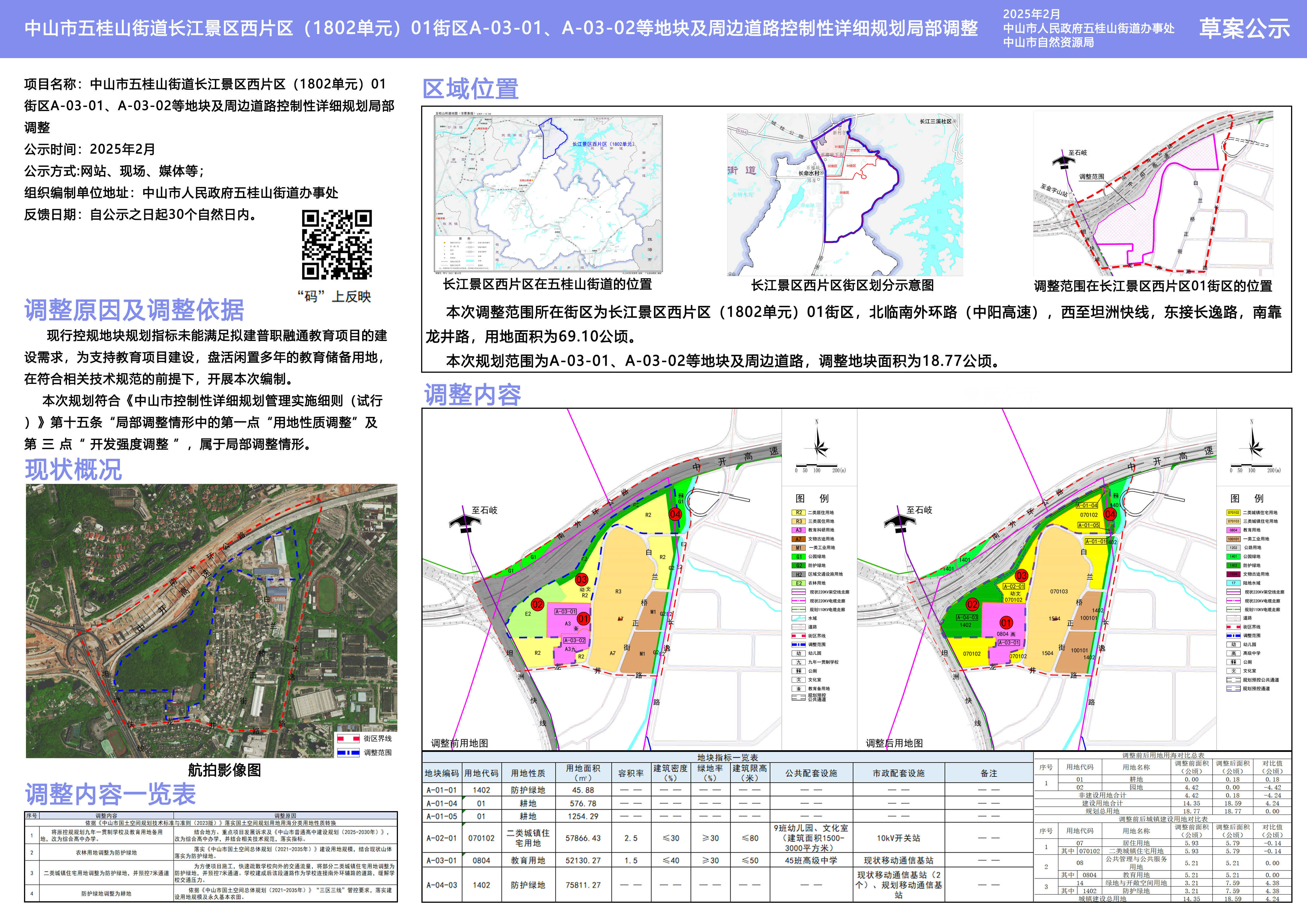 附件:《中山市五桂山街道长江景区西片区(1802单元)01街区A-03-01、A-03-02等地块及周边道路控制性详细规划局部调整》草案公示图
