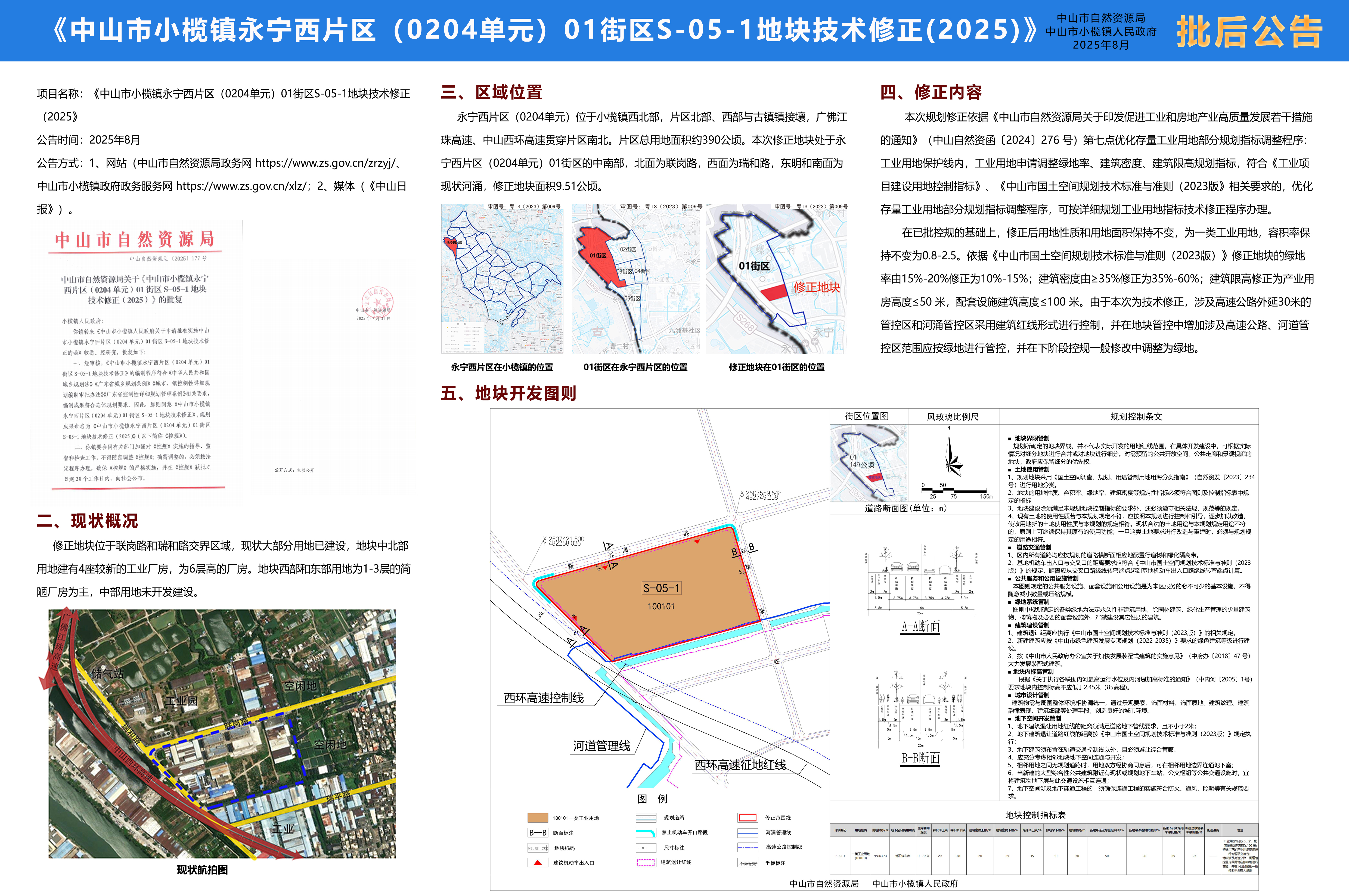 附件:《中山市小榄镇永宁西片区(0204单元)01街区S-05-1地块技术修正(2025)》批后公告
