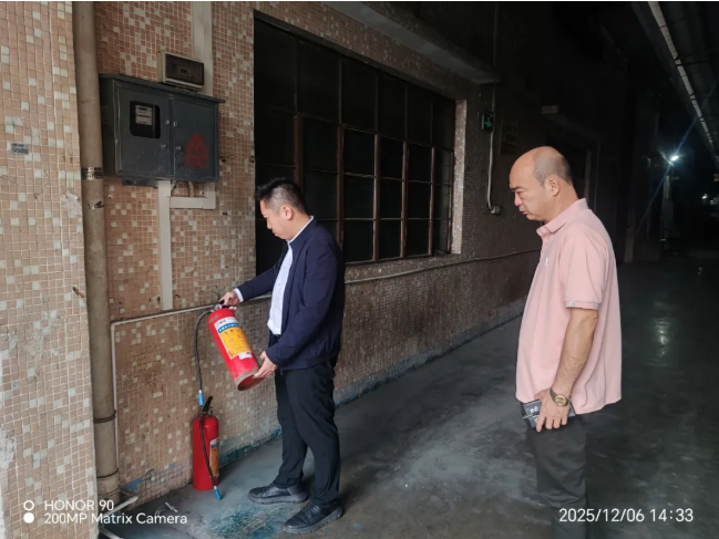 镇党委副书记吴铸辉到埒西一社区,以辖区厂房为重点开展安全生产大排查大整治行动,聚焦冬季工业防火关键环节,全力筑牢企业安全生产防线。检查组深入厂房内部,细致核查各项消防安全情况,通过查阅台账资料、询问制度落实细节,全面掌握企业消防管理现状。针对检查发现的问题,检查组责令相关企业立即整改,同时强调企业要切实扛起主体责任,社区需强化属地监管职责,多方联动共守消防安全底线。