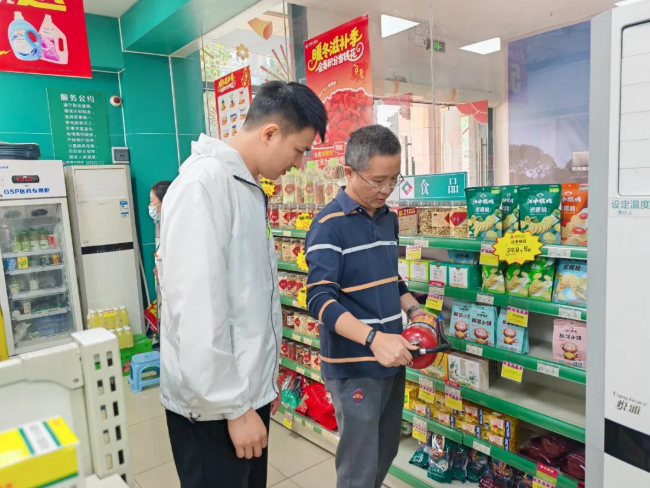 镇党委副书记符万青到竹源社区,开展安全生产大排查大整治行动,重点聚焦辖区“三小场所”、大型餐饮企业等关键部位。针对检查中发现的“三小”店铺线路老旧、私拉乱接,以及餐饮单位厨房通道杂物堆放等隐患问题,符万青现场对相关负责人及员工开展提醒教育并给予整改指导,同时督促经营单位立即落实整改措施,严格对标履行消防安全主体责任。