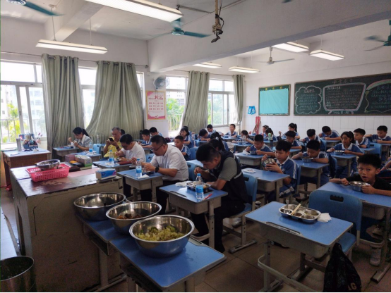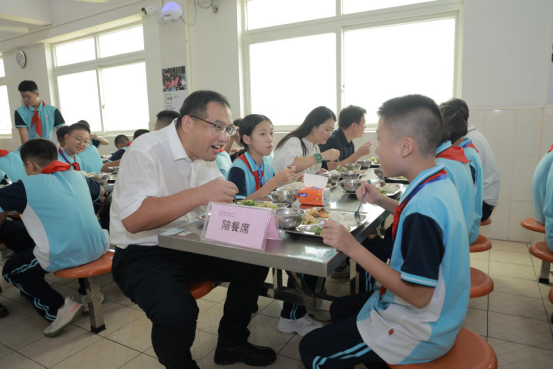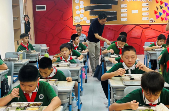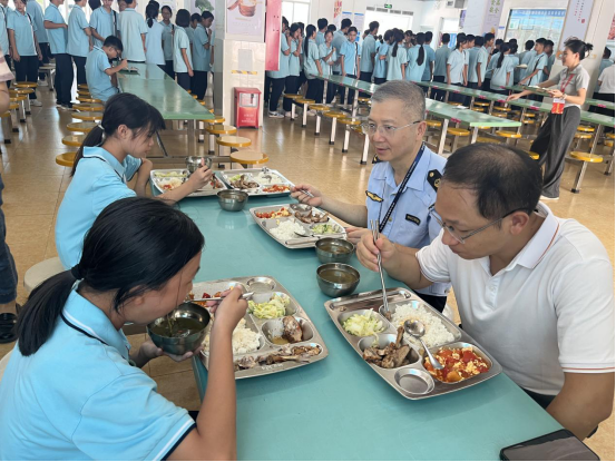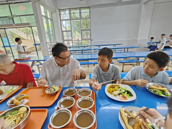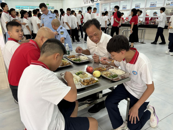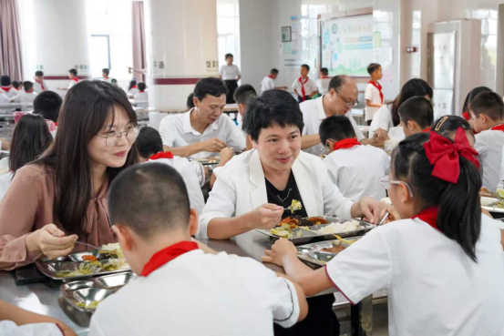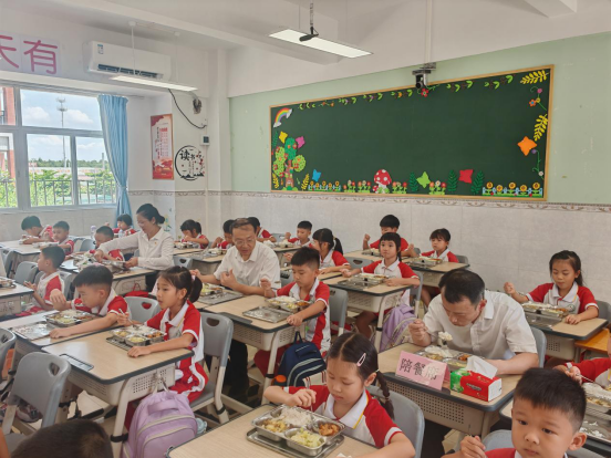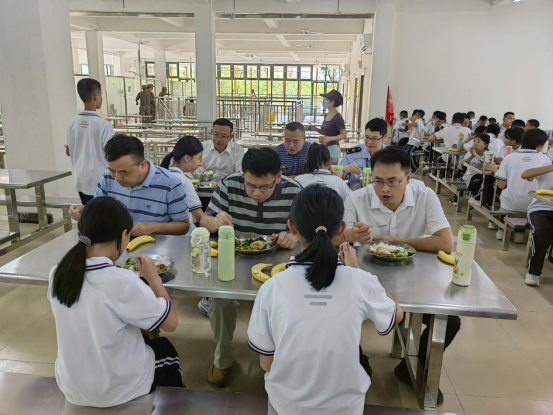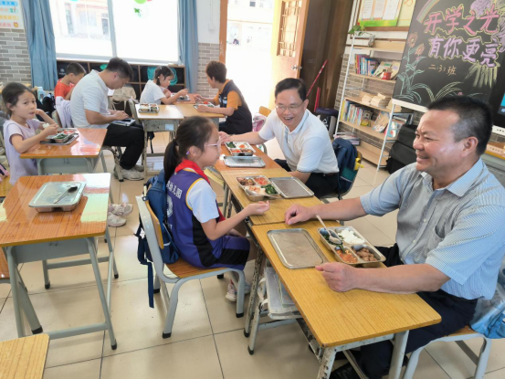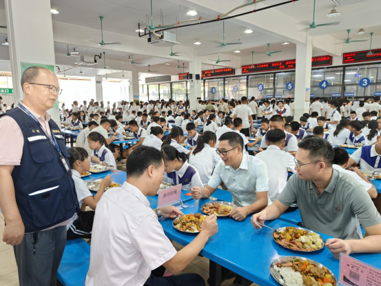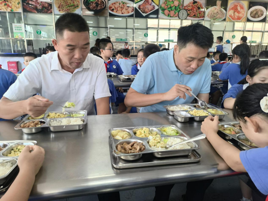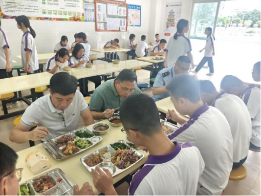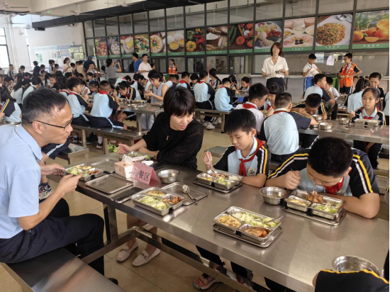 9月1日开学首日,中山市23个镇街党政领导纷纷走进学校开展陪餐行动,采取“看、查、听、品、评、议”方式,听取学生用餐意见,亲身品味校园餐食质量。
