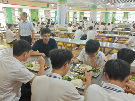 ▲东凤镇副镇长李泰杰检查中山市东凤镇第二中学食堂并自费陪餐。